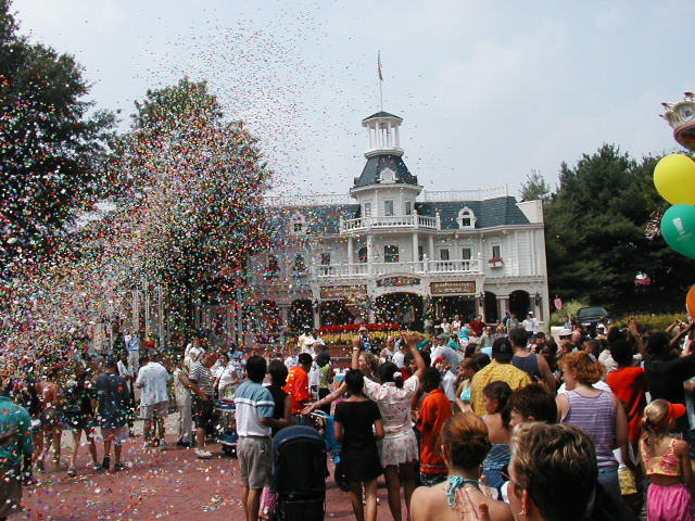 On the last note of "Happy Birthday Six Flags" the confetti cannon let loose a volley to commemorate the 40th anniversary of the popular theme park.