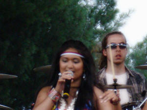 As the afternoon turned to twilight, temperatures moderated down to the mid nineties...refreshing after the 104 it had hit earlier, and the crowds began to swell. We continued to consume water by the bottle and managed to keep everyone on their feet.