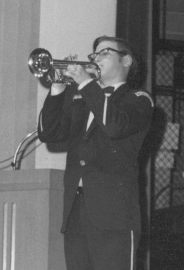 Well, the reality of how much practice it took to become proficient soon hit hard, but the thrill of performance made him keep at it. His first paying gig was at the age of 12, performing "Trumpet Voluntary" for a wedding. He had to ride his bicycle to the gig!