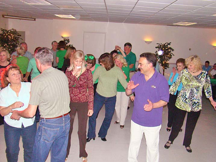 holders of the long The food was Irish to the core, with corned beef, cabbage, carrots, and Irish potatoes. Yum! And of course the dance floor didn't slow down all night. It was a blast seeing so many of our good friends come out on Friday the 13th, knowing that any paraskevidekatriaphobics would be well protected by the luck of the Irish! Click on any photo to see an enlarged view. |