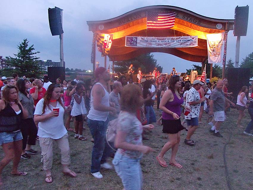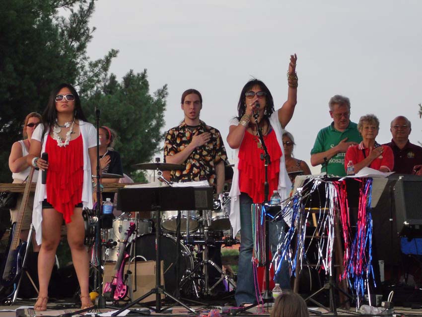 The kids were great, coming up and singing along with lots of the songs that they clearly knew by heart. By the time the sun dipped completely below the western horizon there were people as far as the eye could see, in front of the band, to either side, and even behind us! Click on any of the photos below for an enlarged view. |