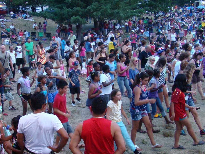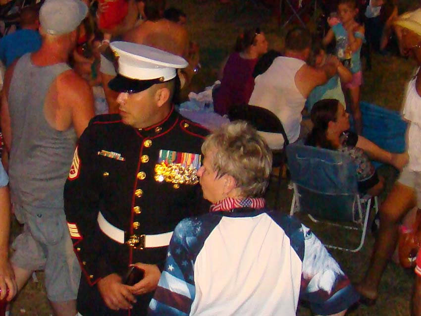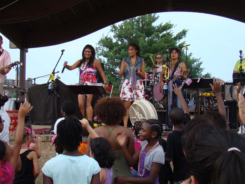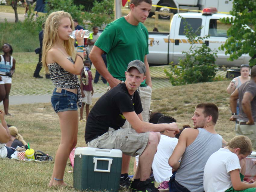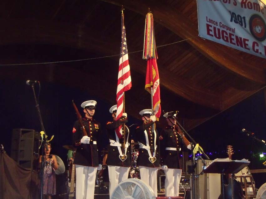 As the afternoon turned to twilight, temperatures moderated down to the mid nineties...refreshing after the 104 it had hit earlier, and the crowds began to swell. We continued to consume water by the bottle and managed to keep everyone on their feet.