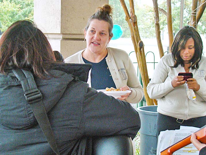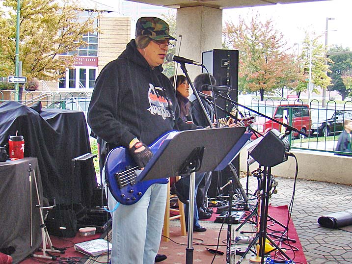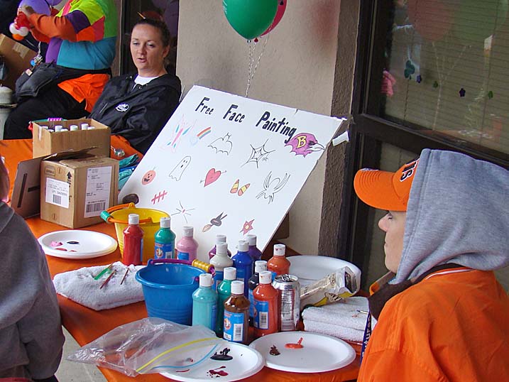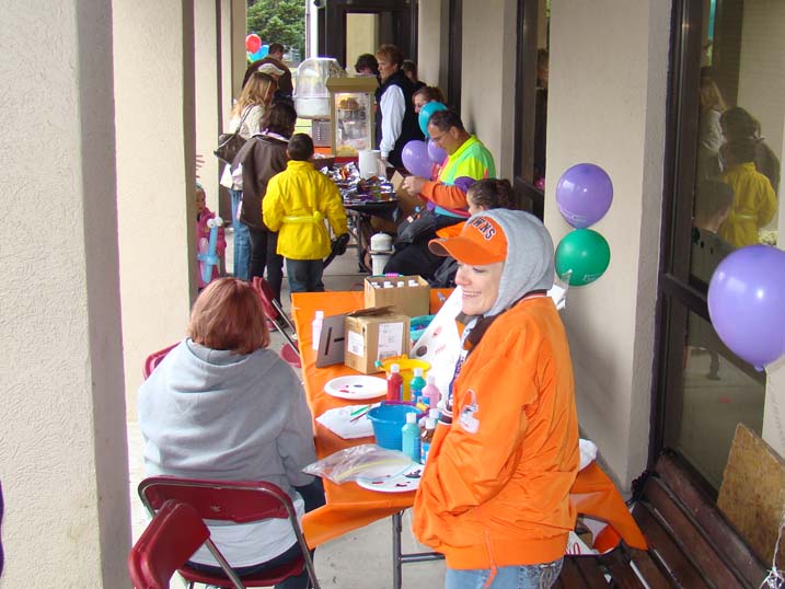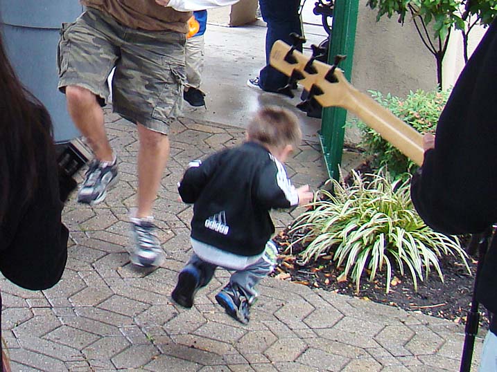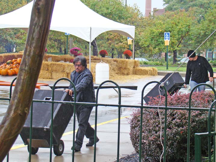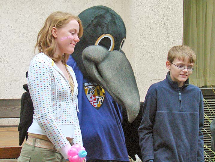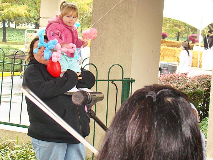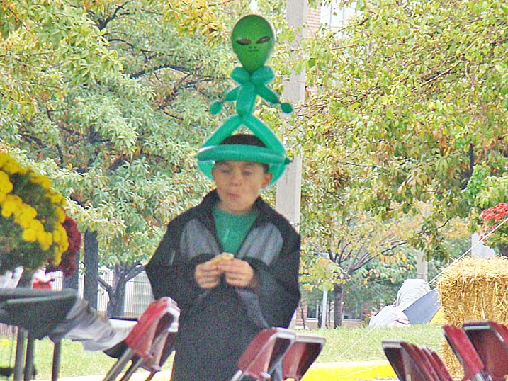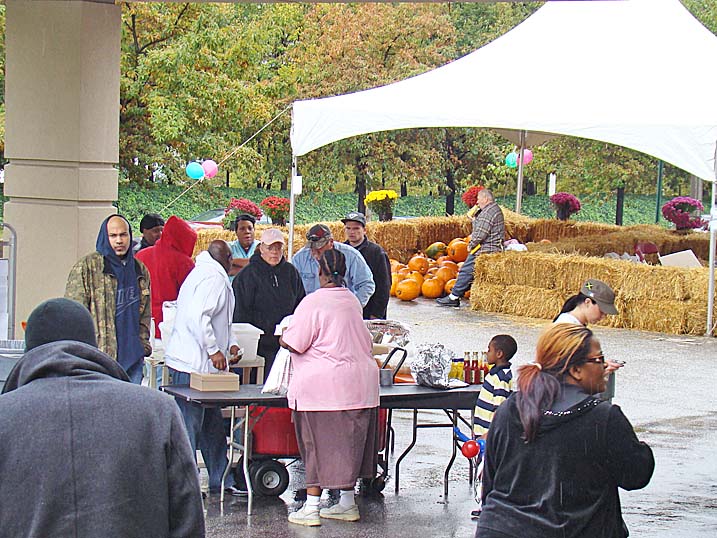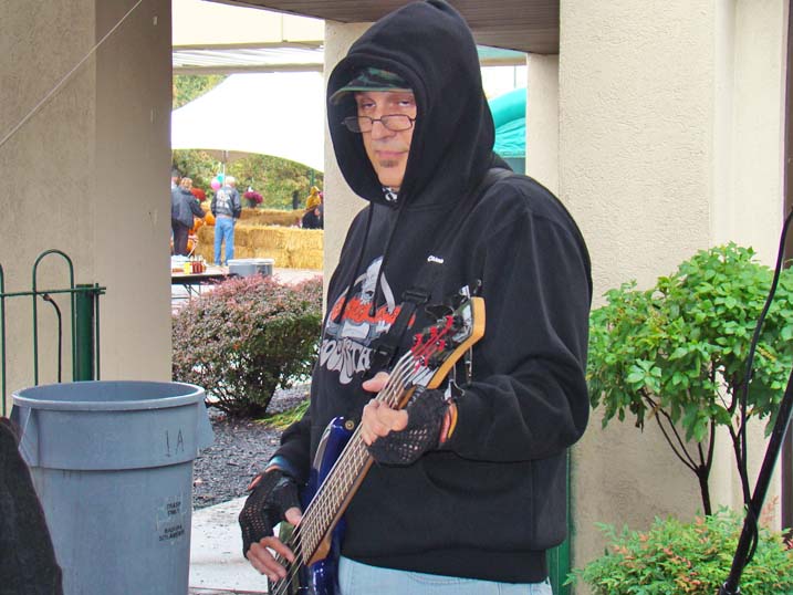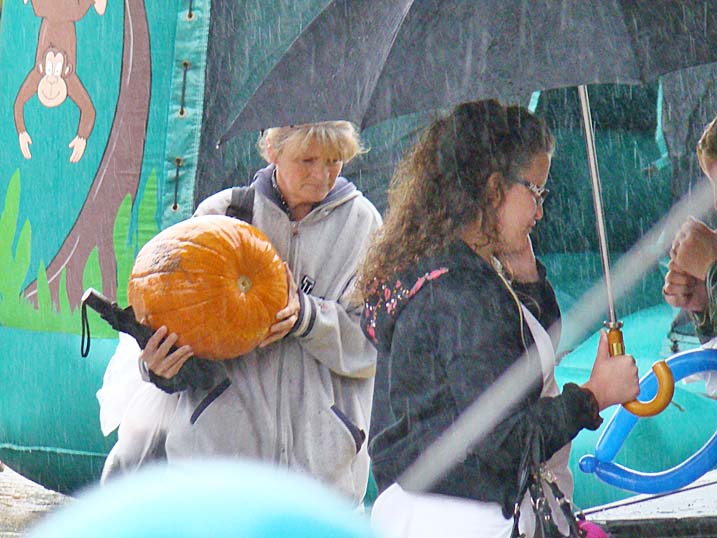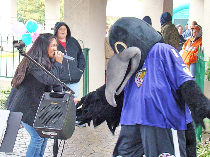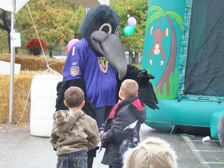 When planning for an outdoor event in the fall one must always keep an eye on the antics of Mother Nature, who could throw anything from an early winter cold snap to a tropical storm at you without even blinking. Last year we actually got a bit sunburned from the sun's rays. Unfortunately 2009 was not to be a repeat of 2008, and Mother Nature paid a visit to let us all know just who is boss, as the temperature never made it above 44 degrees and it rained most of the afternoon. Of course that did not deter some folks, and for these hearty souls we put on the best show we could as the cold air and dampness played havoc with our delicate instruments. The pumpkins were still plump, we received a visit from the Baltimore Raves mascot who energized the crowd, & the food was still super. We're thrilled to announce that we have already been invited back for an unprecedented fourth straight year, and we're hoping that 2010 will bring back the tradition of bright sunshine for this wonderful event. Click on any of the photos below for an enlarged view. |