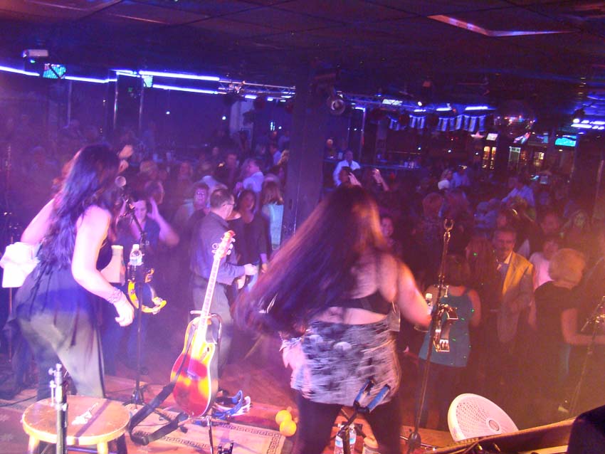 For our November 2011 performance we arrived at the club to set up, and discovered that all of the regular tables had been reserved a week or more in advance, and people were still calling trying to get seats! The management & staff at Whispers worked really hard to try and accommodate everyone, bringing in extra tables for the overflow. Some friends of Steve's came reserving a space for 28 people & had 35 show up, there were a host of birthday parties going on, as well as an anniversary party. Congratulations to all who were celebrating, and thanks Rick for bringing such a spirited group! We hope you like the photos. You can view the thumbnails, click on them to see them in a larger format, or you may scroll to the bottom to view them in a slideshow format hosted at Flickr. We'd also love your comments. You may either go to the Blog Page for this Whispers Party, or head over to our FaceBook Page to tag and comment. |